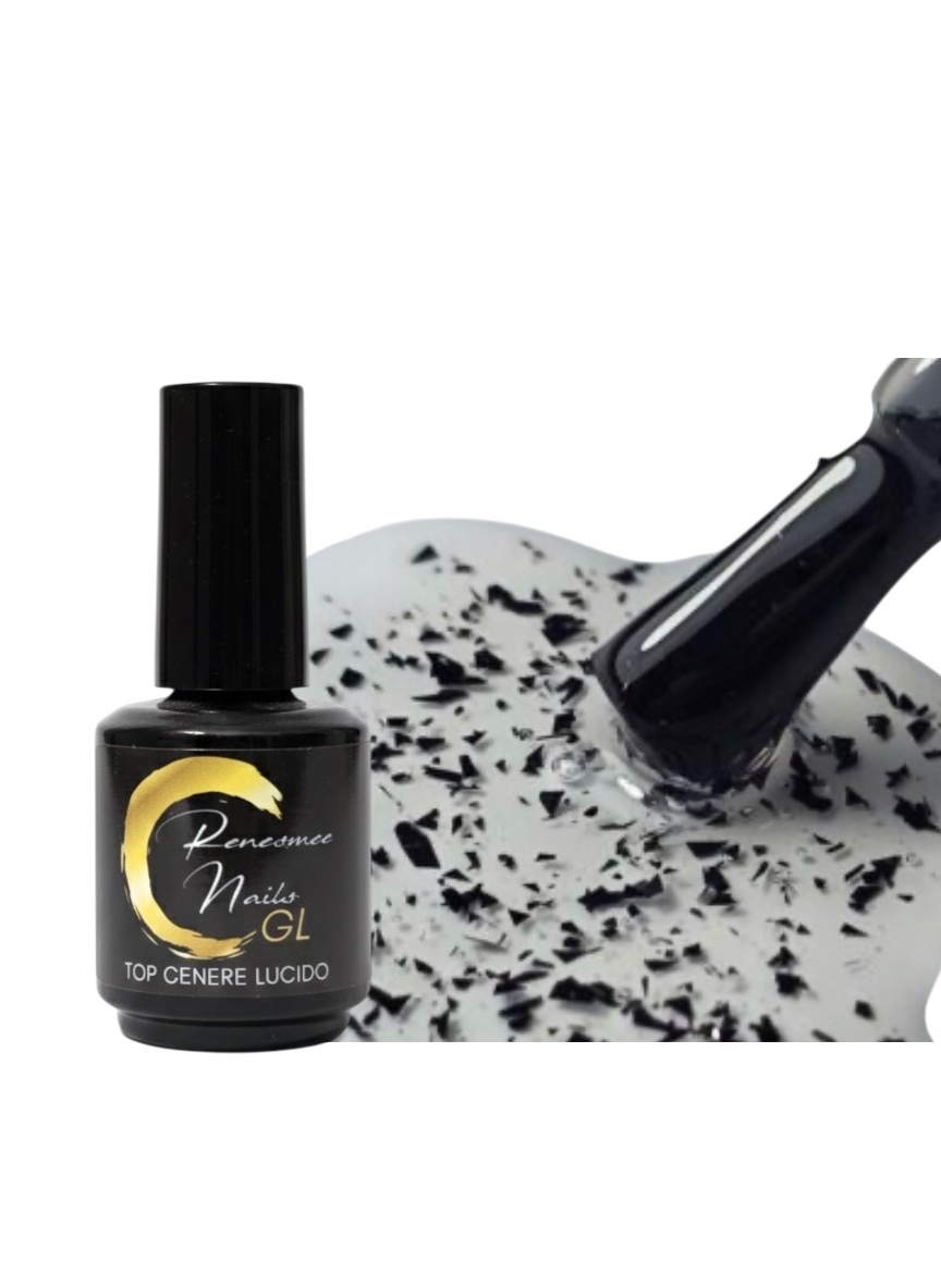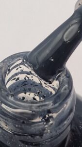Top coat cenere lucido con scaglie nere. Dona un effetto sofisticato e moderno, perfetto per look audaci e minimal.